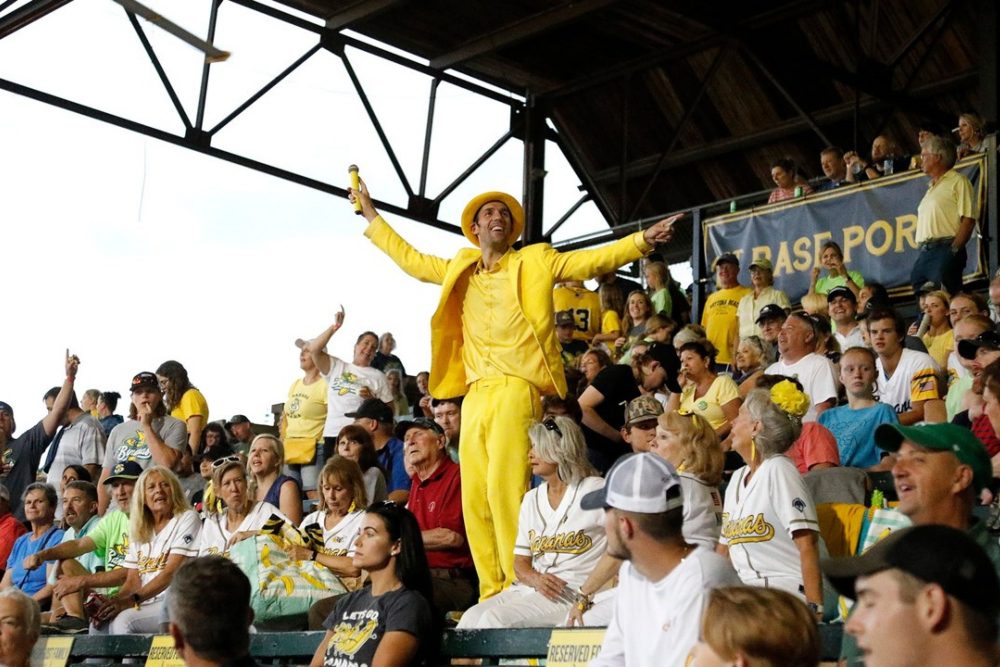Cole pours his heart and soul into every Bananas game. He serves as the emcee of each game and wears a yellow tuxedo and hat to match the team’s colors. Most importantly, he’s on the record in saying he’s willing to try anything, no matter how outrageous, to make Bananas games more fun for fans.